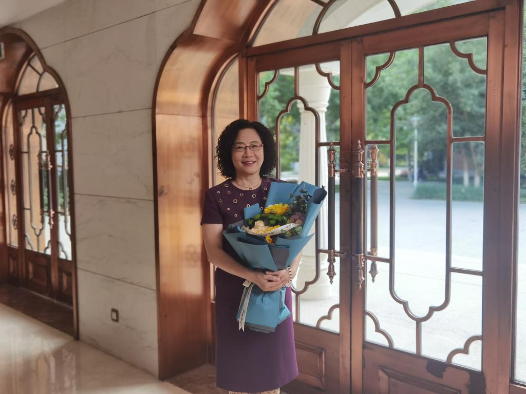 座谈结束后,大家合影留念,学生代表为程慧玲校友献花,常秀鹏书记代表球王会体育官方网站为校友赠送纪念品。