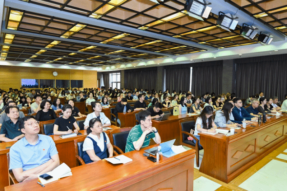 2025年7月1日中国共产党成立104周年之际,球王会体育官方网站党总支组织师生党员在行政楼配楼二层报告厅参加球王会体育官方网站2025年全校党员集中培训第一课,集体观看由中共中央党校(国家行政学院)党的建设教研部副主任祝灵君讲授的“学习贯彻习近平总书记关于加强党的作风建设的重要论述和中央八项规定精神”课程视频。