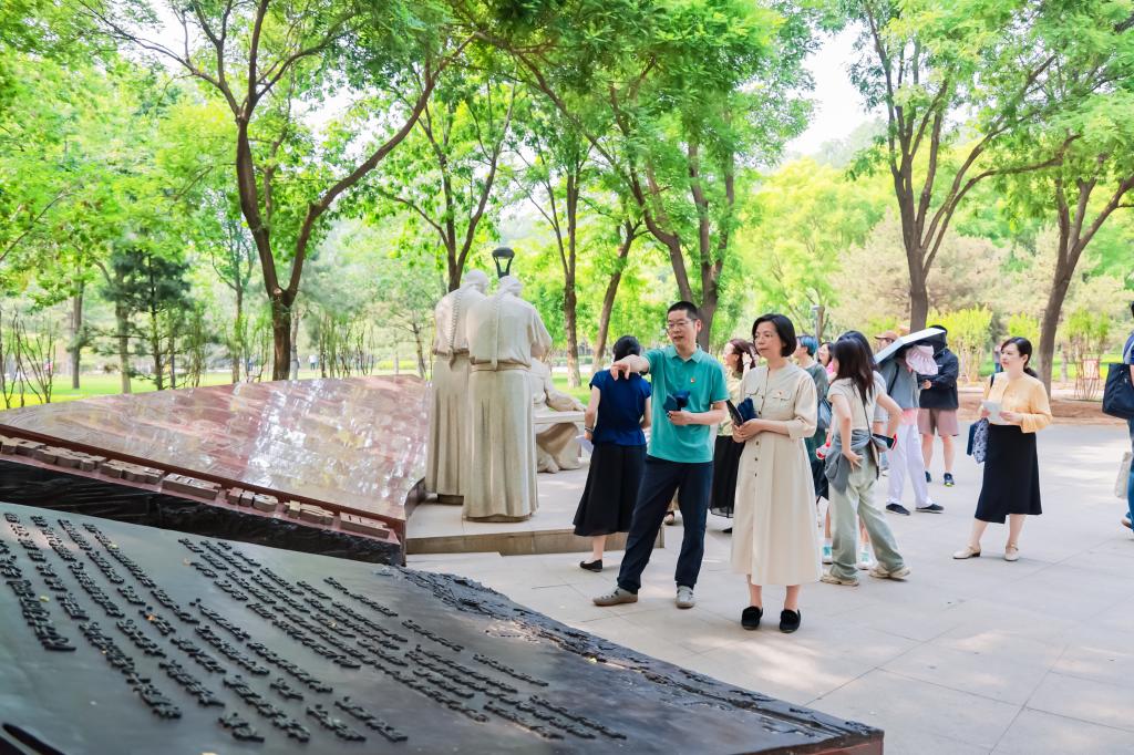 公园内绿树成荫,清水潺潺,与廉政文化主题相得益彰。师生们沿着公园小径,漫步于绿树浓荫之间,边走边看边听边思边悟。在球王会体育官方网站党总支纪检委员张晓玲、教职工党支部书记于芳、研究生第二党支部书记曹芳凝的讲解下,师生党员们详细了解公园内的“通州第一党支部”、“密符扇”和“甘棠镜鉴”等主题雕塑的寓意和背后的故事。这种多角度、沉浸式的学习使师生党员们深刻感受到了廉政文化的历史渊源和现实意义,深化了思想认同和价值认知,在潜移默化中拧紧了思想总开关,切实增强了纪法观念、廉洁意识。在参观过程中,师生们纷纷表示,这样的学习方式既生动又直观,让人印象深刻。参与活动的师生党员对和“通州第一党支部”和“密符扇”两座雕塑印象深刻,纷纷发表了思想感悟: