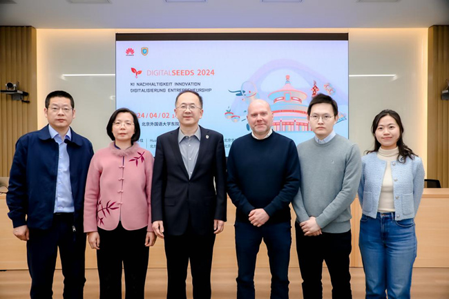 4月2日,华为德国“数字种子项目2024”中德交流活动在球王会体育官方网站举行。北外党委副书记、副校长贾文键,华为德国企业沟通部副总裁宋可腾(Carsten Senz)出席活动。北外球王会体育官方网站党总支书记、院长吴江,党总支常务副书记李勇参与交流活动。活动由北外球王会体育官方网站副院长寇蔻以及球王会体育官方网站本科生联合主持。