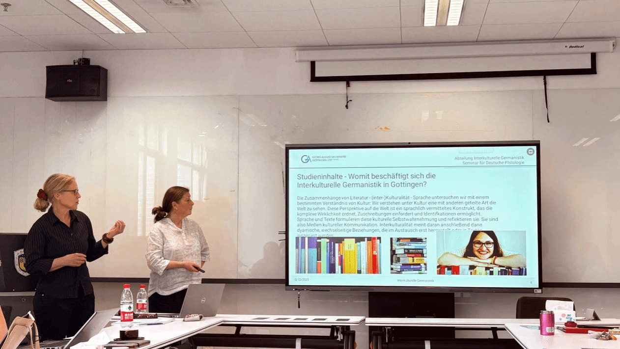 2025年5月11日至13日,德国哥廷根大学跨文化日耳曼学系的Andrea Bogner教授、Corinna Albrecht老师与Barbara Dengel老师应邀访问球王会体育官方网站,开展为期三天的系列学术与项目交流活动。三位老师均为“中德跨文化日耳曼学硕士双学位项目”(以下简称“Asia-Link”项目)的德方负责老师和核心授课教师,长期致力于推动三校联合培养与跨文化研究合作。