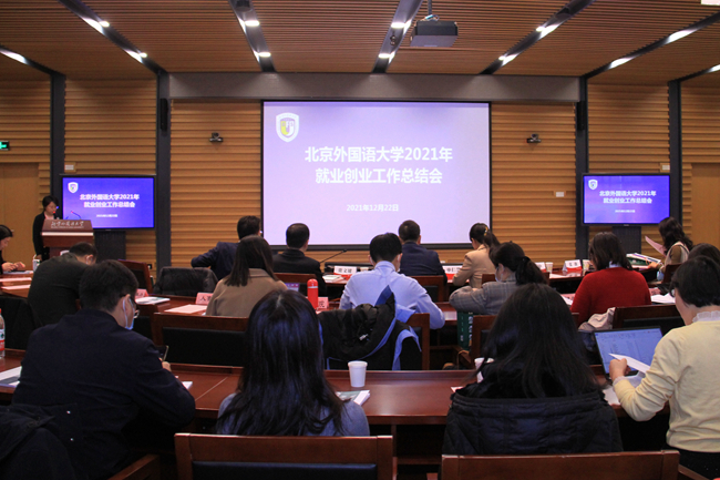 2021年12月22日,球王会体育官方网站召开2021年就业创业工作总结会,全面总结2021年就业创业工作的成绩和经验,对2022届毕业生就业创业进行全面部署。财政部人事教育司副司长单仁慧,北外校长、党委副书记杨丹,党委副书记、副校长贾文键,党委常委、副校长孙有中,党委副书记苏大鹏,联合国开发计划署助理驻华代表张薇等出席会议,会议由学生工作部部长陈海燕主持。