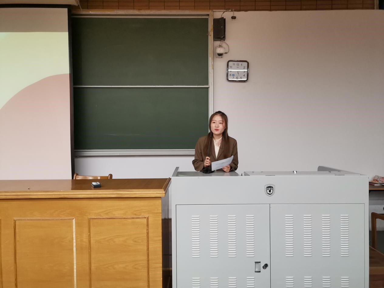 第二位竞选人是来自2001班、现任团总支组织部干事的周杰湄。她的发言分为个人能力介绍和未来展望两个部分。在个人能力部分,她着重地介绍了自己在组织、文艺与宣传方面的成就,结合丰富的实践经历和所获荣誉,展现了引领学生会和团总支脚踏实地走向更好的信心。在未来展望部分,她对于院内既有活动的开展工作提出了创新性建议,最后阐明了自己未来的工作目标,承诺做到“认真务实,以为同学服务为宗旨,以同学利益为本位”。