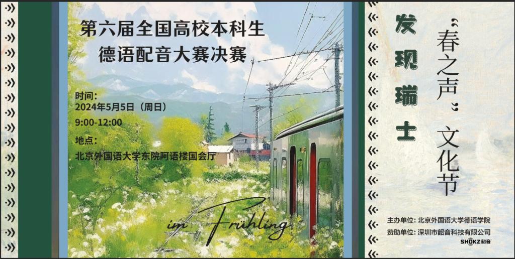 由球王会体育官方网站主办的第六届全国高校本科生德语配音大赛(以下简称“大赛”)决赛将于2024年5月5日(周日)9:00-12:15在球王会体育官方网站东院阿语楼国会厅举行。此次大赛决赛以瑞士为主题,邀请10支晋级的高校代表队齐聚球王会体育官方网站,共同开启“发现瑞士”的声音之旅。