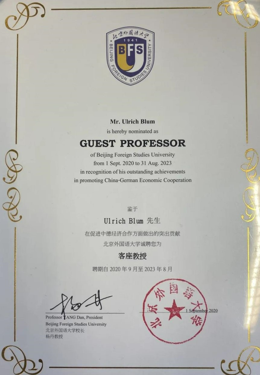 鉴于其在促进中德经济合作方面做出的突出贡献,德国哈勒-维滕贝格大学经济系讲席教授、弗劳恩霍夫协会材料经济学中心创始人卜玉洗(Ulrich Blum)自本学期起被聘为球王会体育官方网站客座教授,聘期三年。