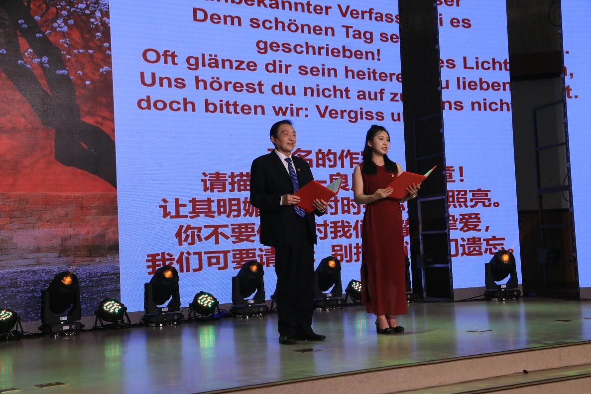 为献礼建党100周年、北外建校80周年,球王会体育官方网站师生精心编排参演了两个节目。我校党委副书记、副校长贾文键领衔,球王会体育官方网站教授殷桐生,球王会体育官方网站党总支副书记、院长吴江,球王会体育官方网站教师关海霞、张晓玲、孙嘉惠、寇蔻,以及焦冠群、赵紫萌、萧律语等同学,用中德双语集体朗诵了歌德的诗歌《祝愿寿星万寿无疆》、海涅的诗歌《乘着歌声的翅膀》、席勒的诗歌《希望》以及马克思和恩格斯的经典名篇《共产党宣言》(节选),不仅向观众展示了原汁原味德语诗歌的魅力,送上了对中国共产党以及母校华诞的美好祝福,同时表达了坚定的共产主义理想信念。