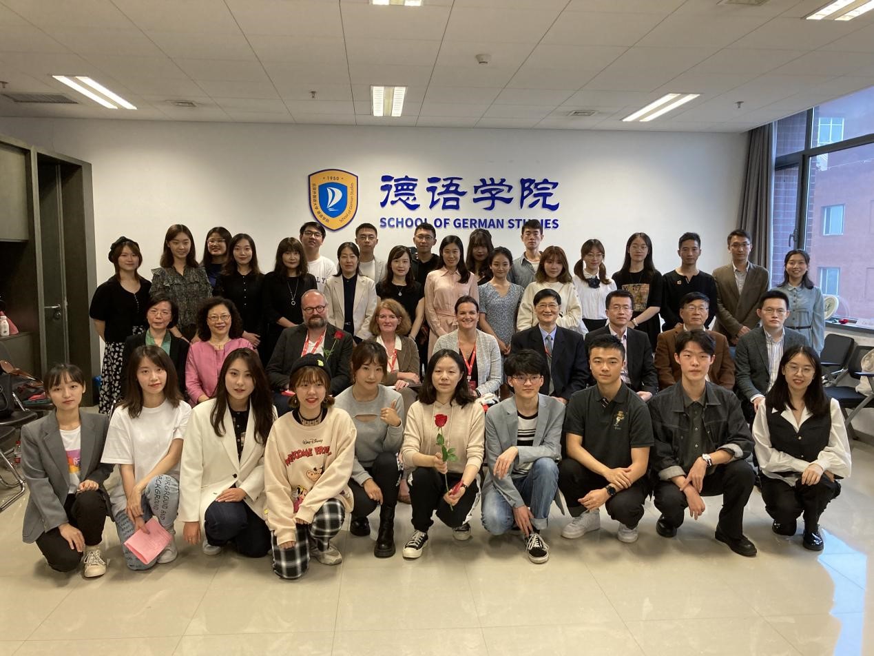 参加本次活动的系友嘉宾有原中国驻奥地利大使馆文化参赞、原德国柏林中国文化中心主任贾建新先生、中联部德奥处处长孙守亮先生、中央党史和文献研究院第五研究部一级翻译张凤凤女士、国家体育总局李嬿女士、华晨宝马公司陈静女士、中央电视台国际新闻编辑赵雄先生、德国电信北京代表处黎默雨女士等。受邀出席诗诵会的德方嘉宾有德国学术交流中心北京代表处首席代表Ruth Schimanowski女士、德国歌德学院副院长伉俪Sabine Wilmes女士和Henrik Dittmann先生。北外上海校友会会长、“程慧玲奖学金”捐赠者、我院1981级系友程慧玲女士和“球王会体育官方网站思刚教育发展基金”捐赠者、我院1994级系友秦思刚、罗旻一家也参与了诗诵会活动。
