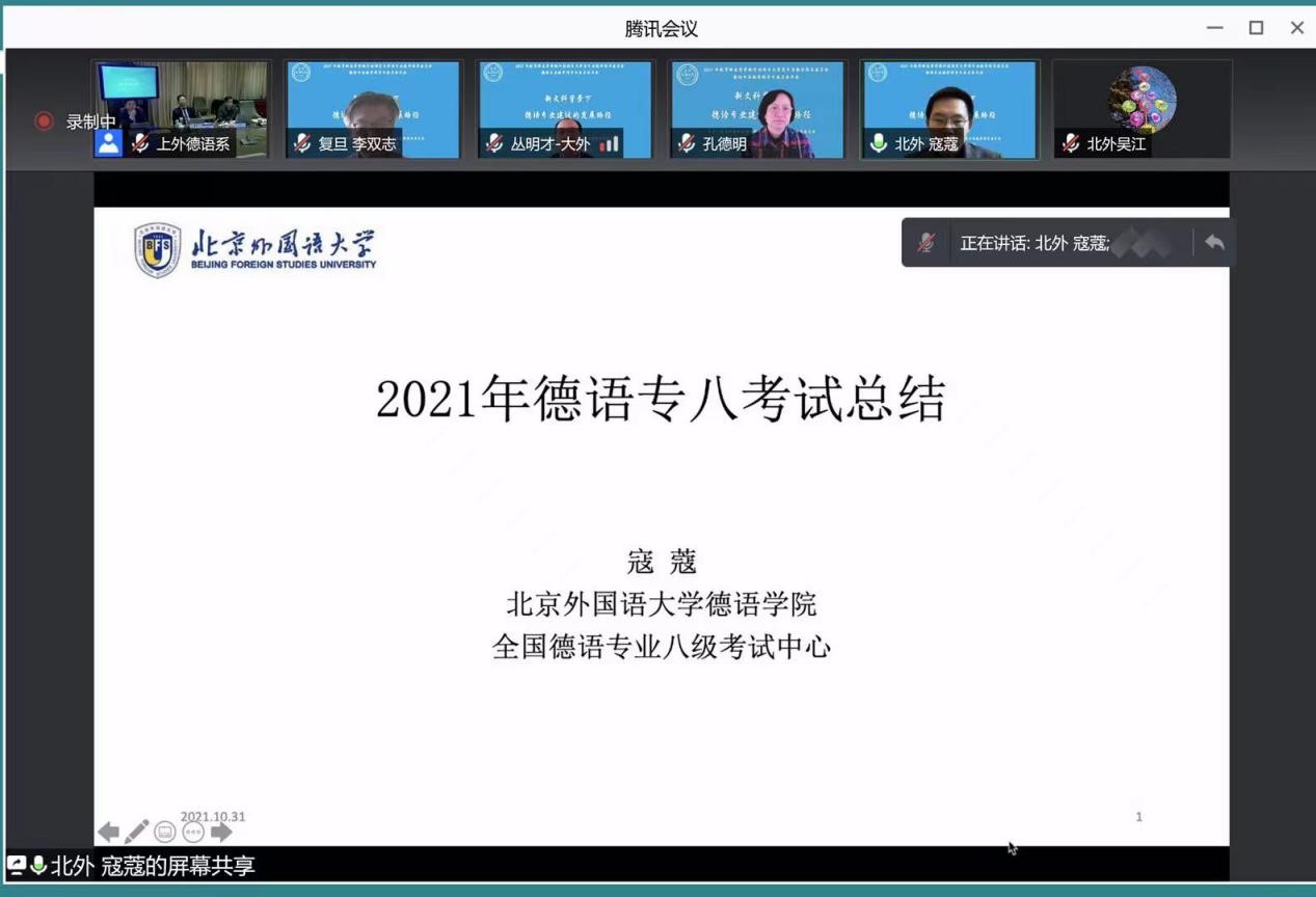 全国德语专业八级考试中心执行主任、我校球王会体育官方网站教师寇蔻就2021年全国德语专业八级考试情况作了大会报告。
