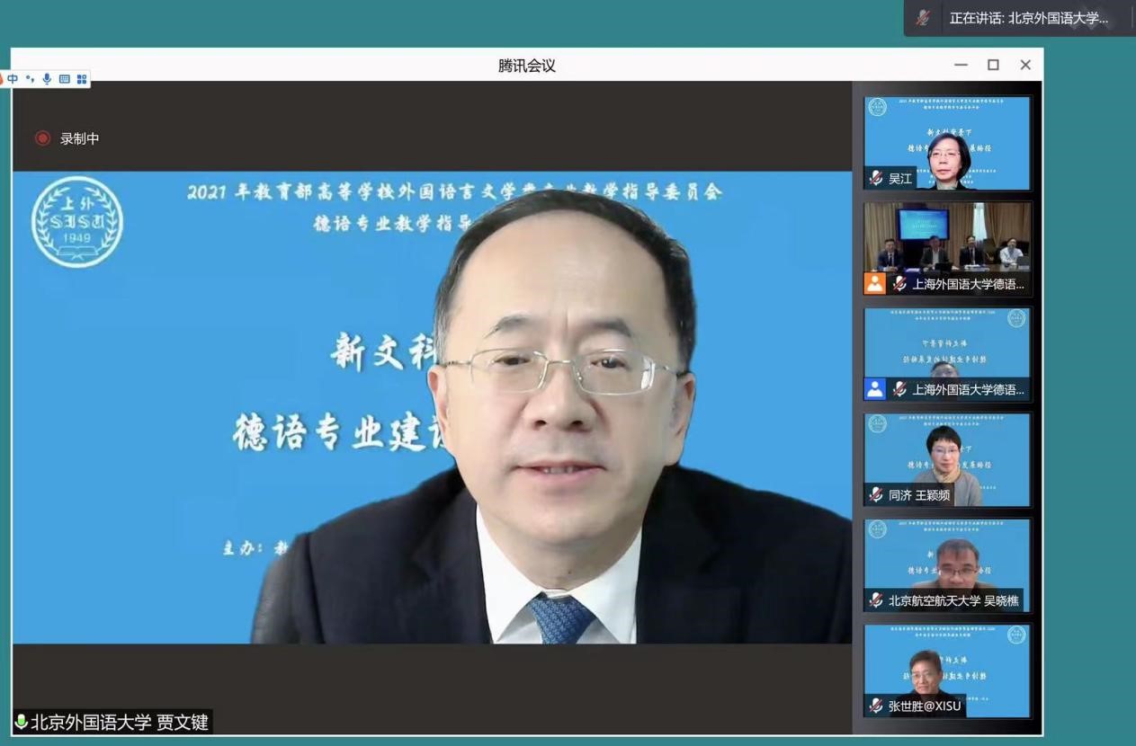 2021年10月30日至31日,由上海外国语大学德语系承办的2021年教育部高等学校外国语言文学类专业教学指导委员会德语专业教学指导分委员会年会以线上形式举行。高等学校外国语言文学类专业教学指导委员会副主任委员、德语专业教学指导分委员会主任委员、我校党委副书记、副校长贾文键作大会主旨报告,并就外指委德分委2022年的工作重点进行了展望和部署。
