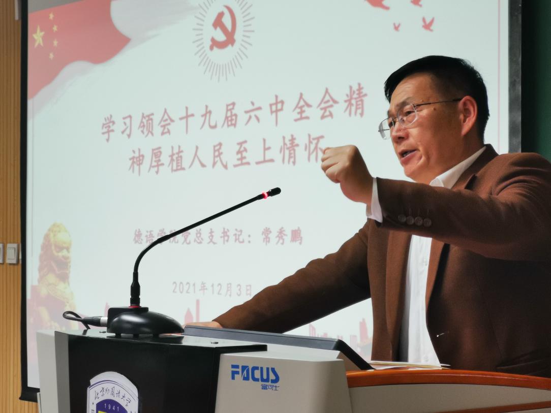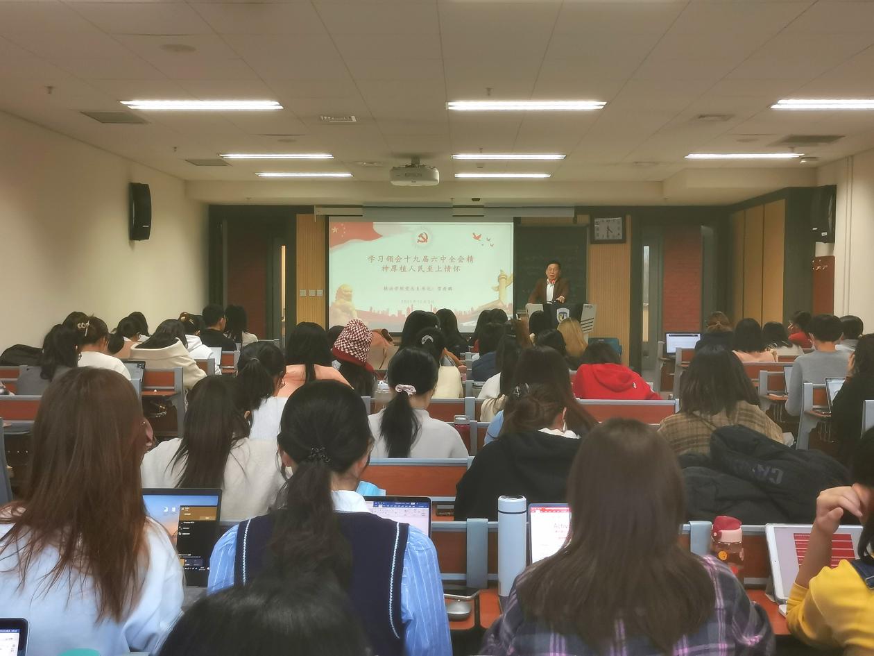 为深入贯彻校党委关于学习党的十九届六中全会精神的要求,提高广大学生党员、入党积极分子的思想觉悟和理论水平,12月3日下午4:30,在国际大厦413教室,球王会体育官方网站举行“党总支书记讲党课”集体学习活动。学院党总支书记常秀鹏为本硕博学生党员、入党积极分子80余人讲授了以“学习领会十九届六中全会精神,厚植人民至上情怀”为主题的党课。辅导员张春霞、粟靖淳参加了学习活动。