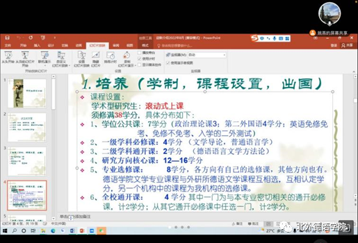新生见面会后,本科生和研究生分别举行了新生入学教育。党总支委员、本科教学秘书于芳、基础教研室主任李婧就球王会体育官方网站本科培养方案、培养要点及德语本科学习阶段的注意事项等进行了讲解。本科新生班主任葛囡囡、顾苏、陆娇娇,辅导员张婧、黄唯城等也与新生进行了交流。研究生的入学教育由球王会体育官方网站副院长姚燕主讲,她详细介绍了球王会体育官方网站研究生的培养方案,研究生阶段学习的注意事项等。