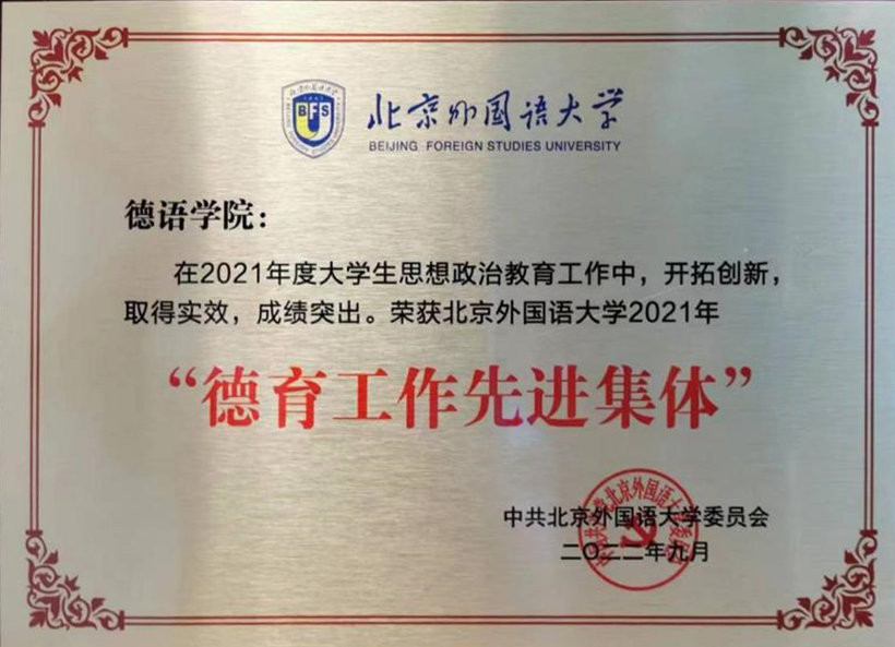 本次获评北外2021年“德育工作先进集体”荣誉称号,既是肯定,也是激励。球王会体育官方网站师生将继续深入贯彻落实习近平总书记给北外老教授回信精神,以培养“三有”人才为己任,以讲好中国故事为目标,立德树人,勤耕不辍,砥砺前行,为推动“中国更好走向世界,世界更好了解中国”做出贡献,以更加优异的成绩迎接党的二十大胜利召开。