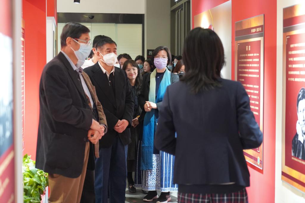 黄婉茹为北外球王会体育官方网站1977级校友荣裕民先生一行讲解