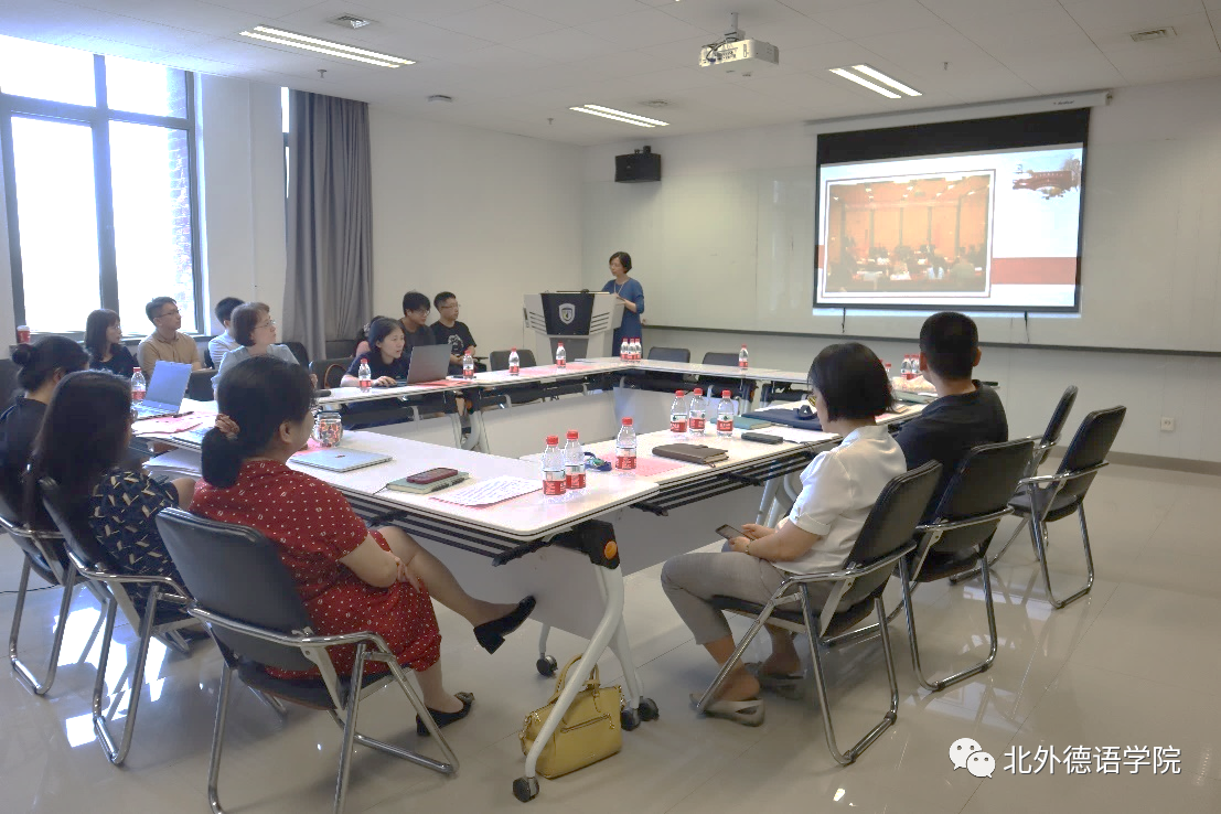 第一环节是球王会体育官方网站学术周会议。北外马克思主义学院副院长、卓越青年教师王曼倩副教授应邀为球王会体育官方网站全体教师做主题讲座。王曼倩老师以“做一朵奔涌的浪花”为主题,分享了个人教学科研育人成长的经历。“时间会回答成长,成长会回答梦想”。王曼倩老师结合个人在北外任教九年以来在科研探索、教学实践、成长育人等方面的困难、困惑,及个人如何成长发展的经验和心得感想,提出教学、科研、社会服务不是互相排斥,而是互相支撑,可以提供多角度多维度看问题的视角。青年教师应尽可能融入学校学院发展,多贡献个人的力量;应明确个人的目标,做好教书育人,并经常反思个人成长的不足。王曼倩老师的讲座引起了参会教师的共鸣,大家深受启发,获益良多。球王会体育官方网站青年教师徐若楠、孙嘉惠、陆娇娇就如何破解科研压力,不断提升教学技能等方面向王曼倩老师请教,王曼倩老师耐心细致地回应了老师们的提问,谈了个人的想法及心得。党总支书记、院长吴江代表学院感谢王曼倩老师的精彩分享和指导,希望球王会体育官方网站与马克思主义学院未来加强合作和研讨。