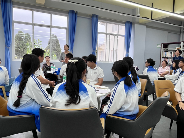 最后,实践研习团来到鹤庆三中,与即将参加高考的学子进行座谈交流。教师党员们向高中生们介绍了北外及球王会体育官方网站的基本情况,同时以生动活泼的形式与师生就德国文化进行了互动交流,并在分组讨论环节就大学生活、英语学习、外语教学等主题展开了对话,现场气氛十分热烈。