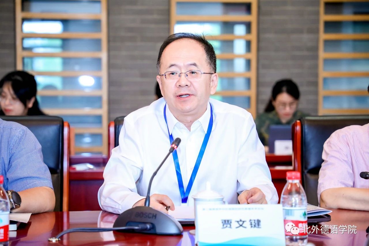 北外党委副书记、副校长,外指委德分委主任委员贾文键出席论坛开幕式并致辞。开幕式环节由北外球王会体育官方网站党总支书记、院长,外指委德分委秘书长吴江主持。