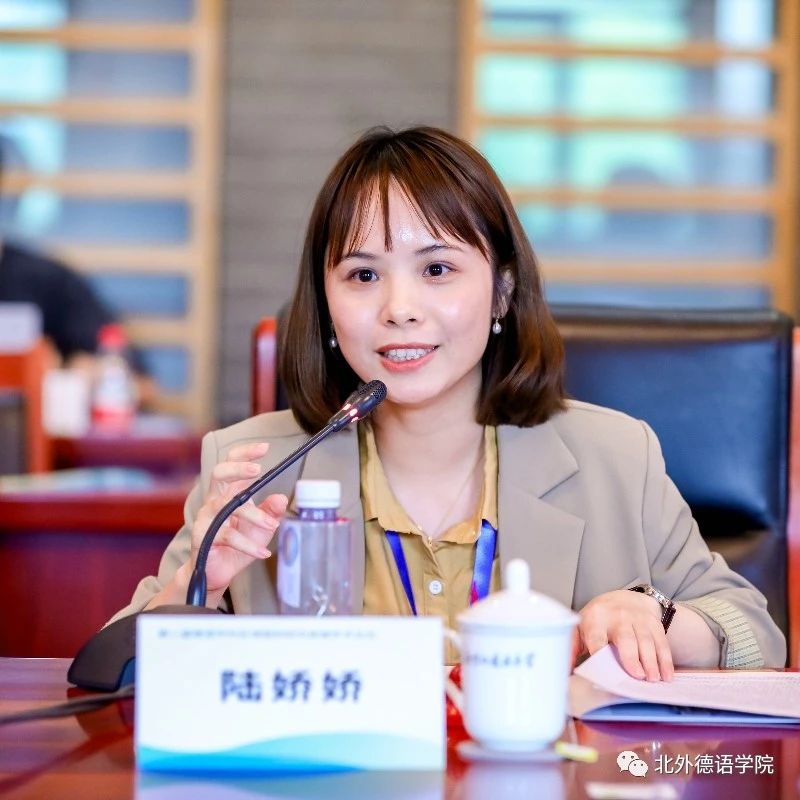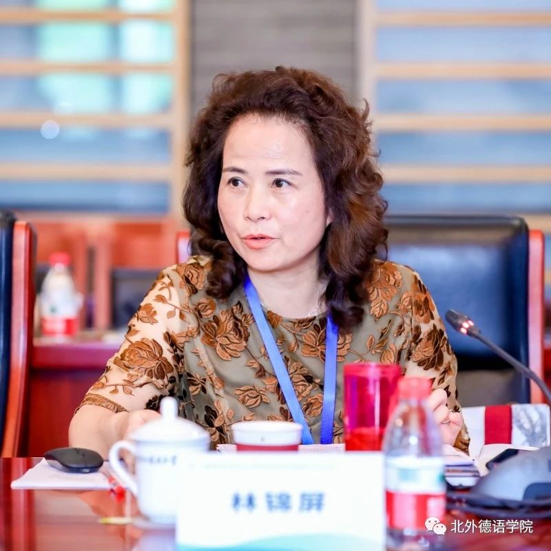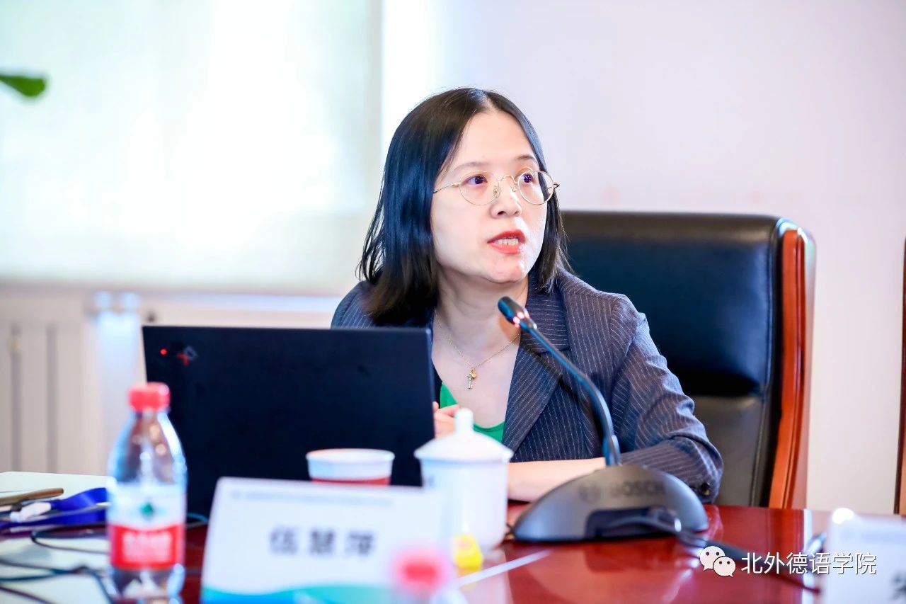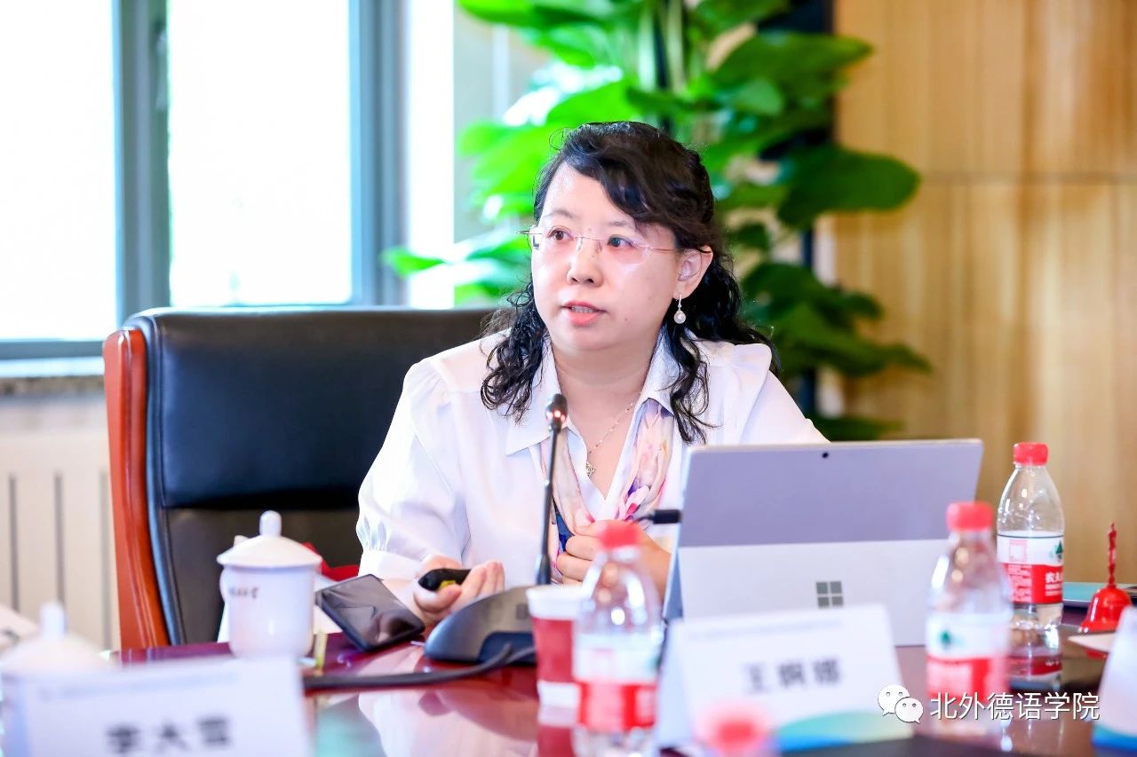 “教学教法与创新实践”主题研讨环节由北外球王会体育官方网站研究生教研室主任陆娇娇主持。云南大学地球科学学院研究员林锦屏基于班杜拉社会认知理论,运用结构方程模型构建大学生线上自主学习效果模型,探讨了如何培养与挖掘大学生的学习潜力与创新能力以及如何提升大学生线上自主学习效果和教学质量。南京大学外国语学院德语系主任陈民以“拉贝日记与和平城市”团队的发展为例,分享了“知行合一”的教育创新案例。北外球王会体育官方网站基础教研室主任李婧以新近出版的《新经典德语》教材为例,探讨了本科基础阶段教材融入国情与文化的思路与路径。北外球王会体育官方网站党总支委员、本科教学秘书于芳分享了“理解当代中国”系列教材融入国别区域方向专业知识课程的实践与思考。北外球王会体育官方网站本科一年级教学组长葛囡囡以日本德语教材为例,从符号学视角对呈现文化的图像及其与相关文字之间的关系以及图像发挥的作用进行了分析。在交流环节,与会嘉宾纷纷点赞全国高校德语学科点的创新实践以及教材建设成果。