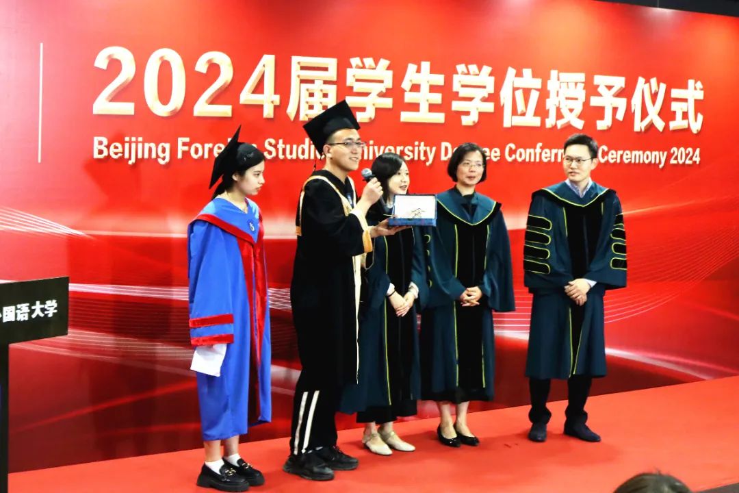 即将入职新华社参考消息报社的宋羽豪和即将入职外交部的王丰分别作为硕士毕业生代表和本科毕业生代表发言。