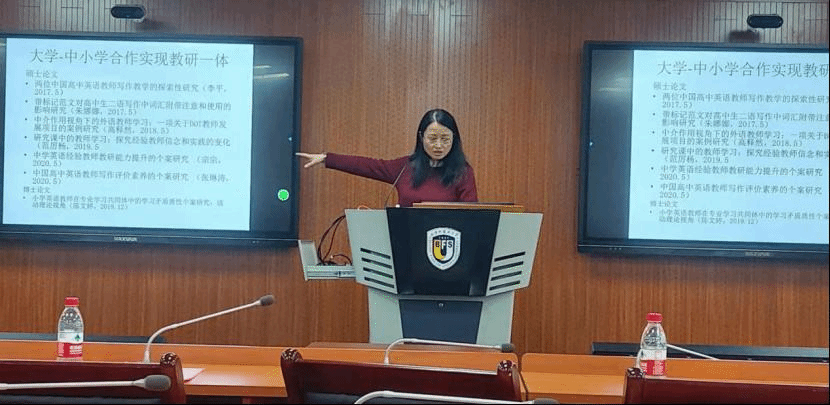 会议分两个环节,第一环节是专家讲座,由球王会体育官方网站副院长姚晓舟主持。这一环节邀请了我校亚洲学院教授、博士生导师李丽秋围绕“基础口译教学心得”进行说课演示,中国外语与教育研究中心教授、博士生导师、国际教育学院副院长杨鲁新就“‘金课'教学与外语教师专业发展”做了专业指导。李丽秋教授介绍了她讲授《基础口译》这门课的教学理念和教学心得,分享了教学设计、教学方法、教材使用、课后作业布置等方面的经验。杨鲁新教授分享了她在课程设计、学生参与程度、课程评估形式、外语课程设置等方面的思考,对外语教师在教学、科研等方面发展提出了几点建议:教学应该与科研相结合,相辅相成;外语教师应加强教学法的研究;应加强教研项目驱动、课程团队建设、教师发展共同体建设等。