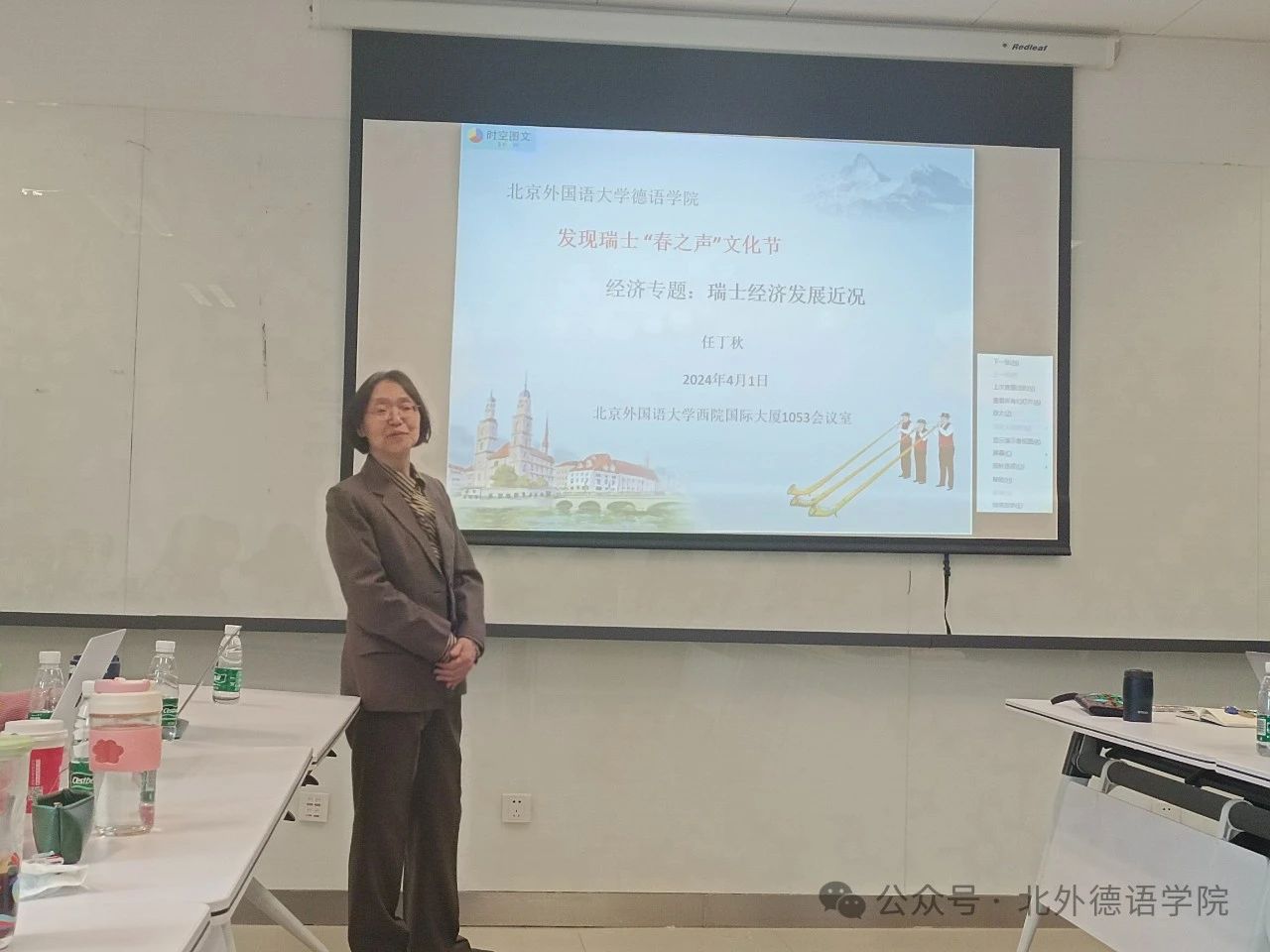 2024年4月1日下午,北京市社会科学院副研究员任丁秋应邀为北外球王会体育官方网站师生做题为“瑞士经济发展近况”的讲座。讲座由球王会体育官方网站书记、院长吴江主持。