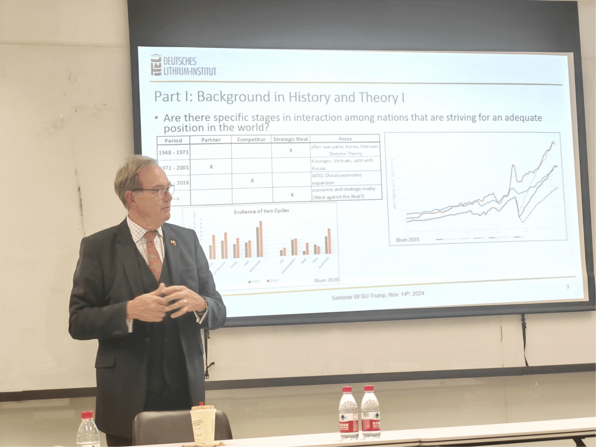2024年11月14日下午,德国哈勒-维腾贝格大学法学与经济学院讲席教授、球王会体育官方网站客座教授卜玉洗(Ulrich Blum)应邀到北外球王会体育官方网站作了题为“经济战和特朗普:来自欧洲的中国视角”的专题讲座。此次讲座由经济教研室主任徐四季副教授主持。