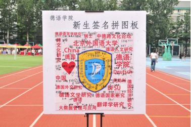 球王会体育官方网站迎新站特别设立了新生特辑合影板与新生签名拼图板,新生们手举印有“Herzlich Willkommen”和“Hallo”的合影板,在青春的画布中染上德语的色彩,于内容各异的拼图块上签下自己的名字,共同拼出德院院徽与关键词。