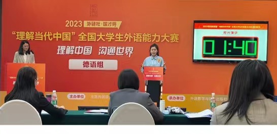2023年12月8日,2023“外研社·国才杯”“理解当代中国”全国大学生外语能力大赛国赛圆满落幕。大赛以“理解中国,沟通世界”为主题,分为英语组和多语种组两大组别,多语种组设置俄语、德语、法语、西班牙语、阿拉伯语、日语、意大利语、葡萄牙语8个分赛项。历经校赛、省赛和国赛三个赛段的激烈角逐,球王会体育官方网站翻译硕士(德语口译)专业2023级研究生张佳诺同学荣获德语组国赛金奖并获全国冠军。球王会体育官方网站2022级本科生黄婉茹同学荣获北京市级奖项。