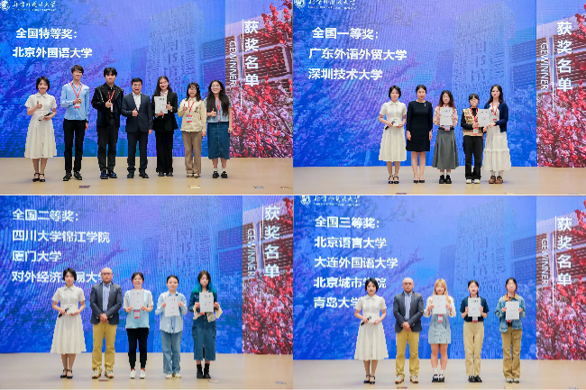 最终,球王会体育官方网站代表队获得全国特等奖,广东外语外贸大学和深圳技术大学代表队获得全国一等奖,四川大学锦江学院、厦门大学和对外经济贸易大学代表队获得全国二等奖,北京语言大学、大连外国语大学、北京城市学院和青岛大学代表队获得全国三等奖。