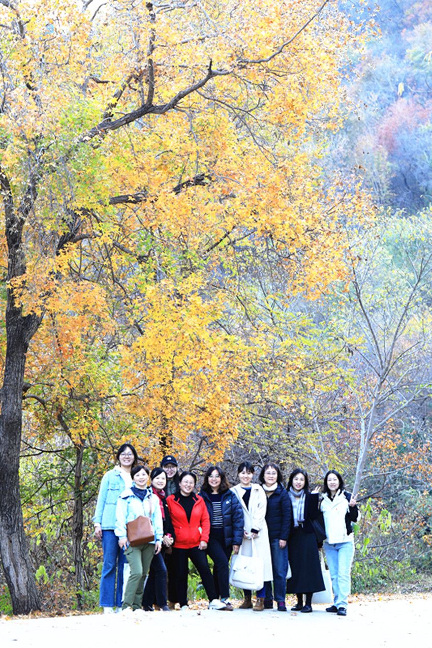 活动当天,秋高气爽,层林尽染,参与活动的教师们沐浴着秋日暖阳,欣赏着沿途美景红色的栎叶、黄色的栌叶、金色的枫叶五彩斑斓,让大家赞叹不已,纷纷拍照留念。老师们边赏红叶边畅聊工作生活趣事,和谐愉快的氛围有效缓解了紧张的工作节奏。